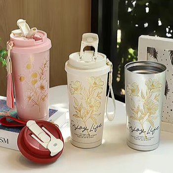 Grande capacità 316 in acciaio inox tazza di caffè portatile doppio cannucce vuoto Thermos ad alta apparenza bevande calde fredde tazza di acqua